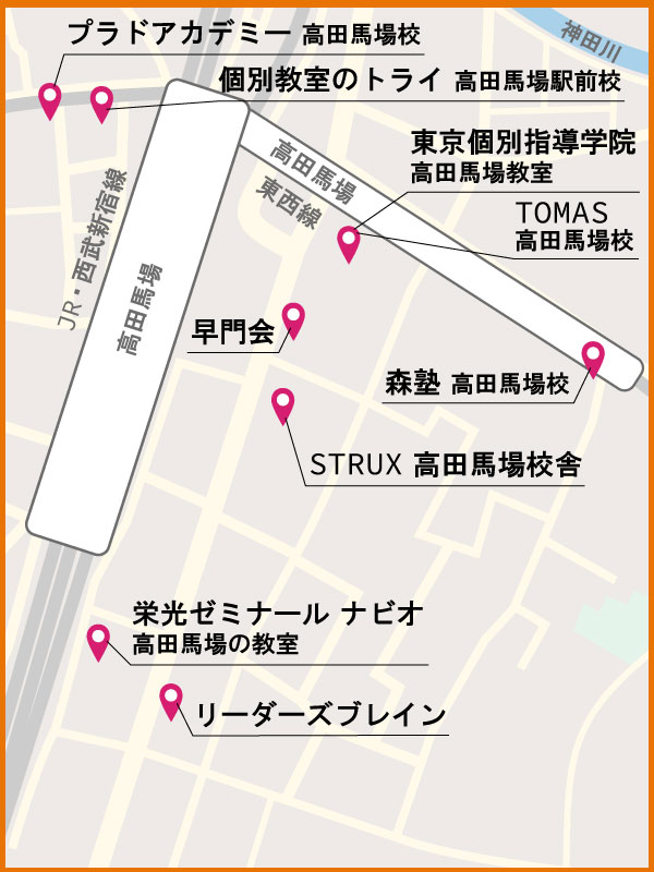 所在地・アクセス | 所在地:東京都新宿区高田馬場2-14-5 サンエスビル5階 アクセス:JR・西武新宿線「高田馬場駅」早稲田口 徒歩4分/東京メトロ東西線「高田馬場駅」6番出口 徒歩1分 |